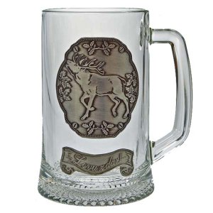 Wenn Sie einen Jägerin der Familie oder im Freundeskreis haben , dann ist dieses große Bierglas mit Metalletikett, auf dem einHirsch abgebildet ist, einegute Wahl für ein Geschenk.