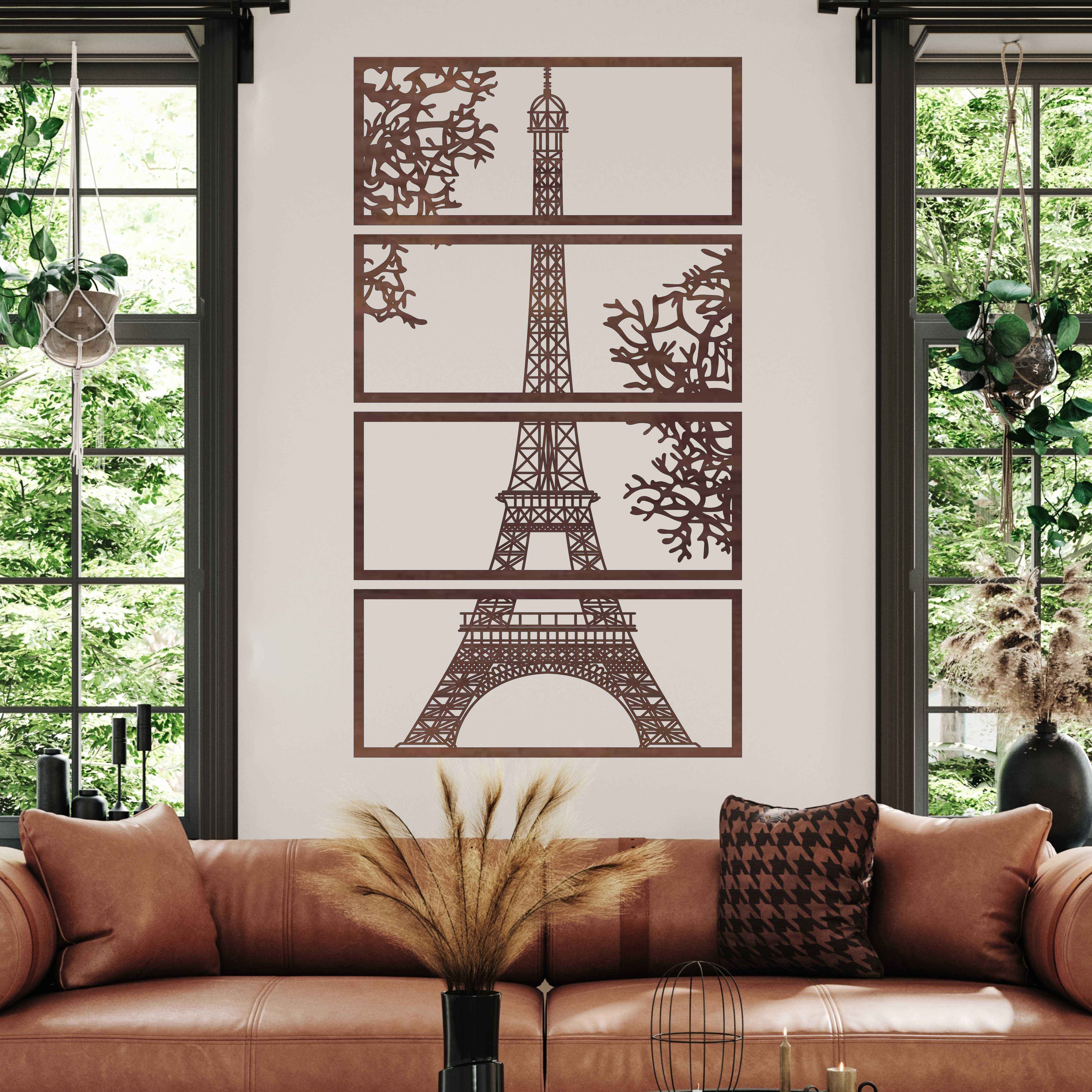 Wir präsentieren Ihnen eine einzigartige Möglichkeit, ein Stück Pariser Eleganz direkt in Ihr Zuhause zu bringen. Vierteiliges Bild an der Wand – der Eiffelturm ist mehr als nur eine Dekoration; Es ist ein Kunstwerk, das jeden Raum in einen stilvollen Raum voller Inspiration und Romantik verwandelt.