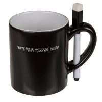 Ein magischer Becher mit einer geheimen Botschaft. Ein magischer Becher, auf den man eine geheime Nachricht schreiben kann, die nach dem Einschenken eines heißen Getränks erscheint. Der Becher wird mit einem Stift geliefert, mit dem man die Nachricht auf den Becher schreiben oder die ursprüngliche Nachricht löschen kann.