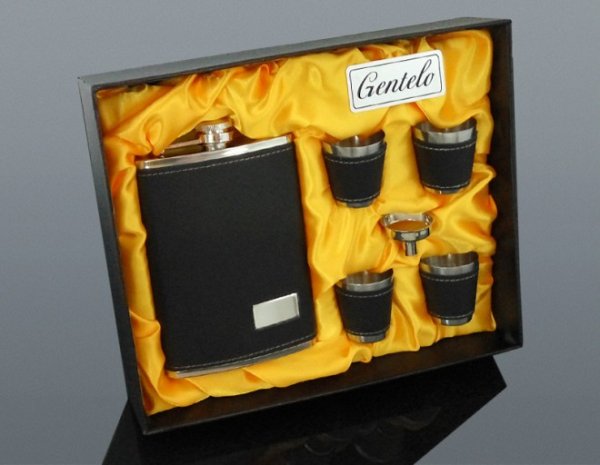 Dieses stilvolle und elegante Set verleiht Ihren gesellschaftlichen Anlässen genau den richtigen Hauch von Luxus. Der Klöppel ist präzise aus rostfreiem Stahl gefertigt und mit schwarzem Kunstleder umhüllt, was ihm ein außergewöhnliches Aussehen und einen angenehmen Griff verleiht. Sein Fassungsvermögen von 240 ml ist ideal für eine große Menge Ihres Lieblingsgetränks. Die vier Schnapsgläser mit einem Fassungsvermögen von 35 ml, die ebenfalls mit schwarzem Kunstleder umhüllt sind, eignen sich perfekt, um Freunde und Familie zu verwöhnen - dasperfekte Accessoire für alle, die ihr Lieblingsgetränk stilvoll genießen möchten. Verpackt in einer attraktiven Geschenkbox ist dies das perfekte Geschenk für Ihren Ehemann, Vater, Bruder oder Freund, der luxuriöse und praktische Geschenke zu schätzen weiß.