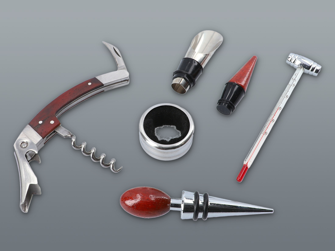 - einenMetallstopfen zur Aufbewahrung von bereits geöffnetem Wein